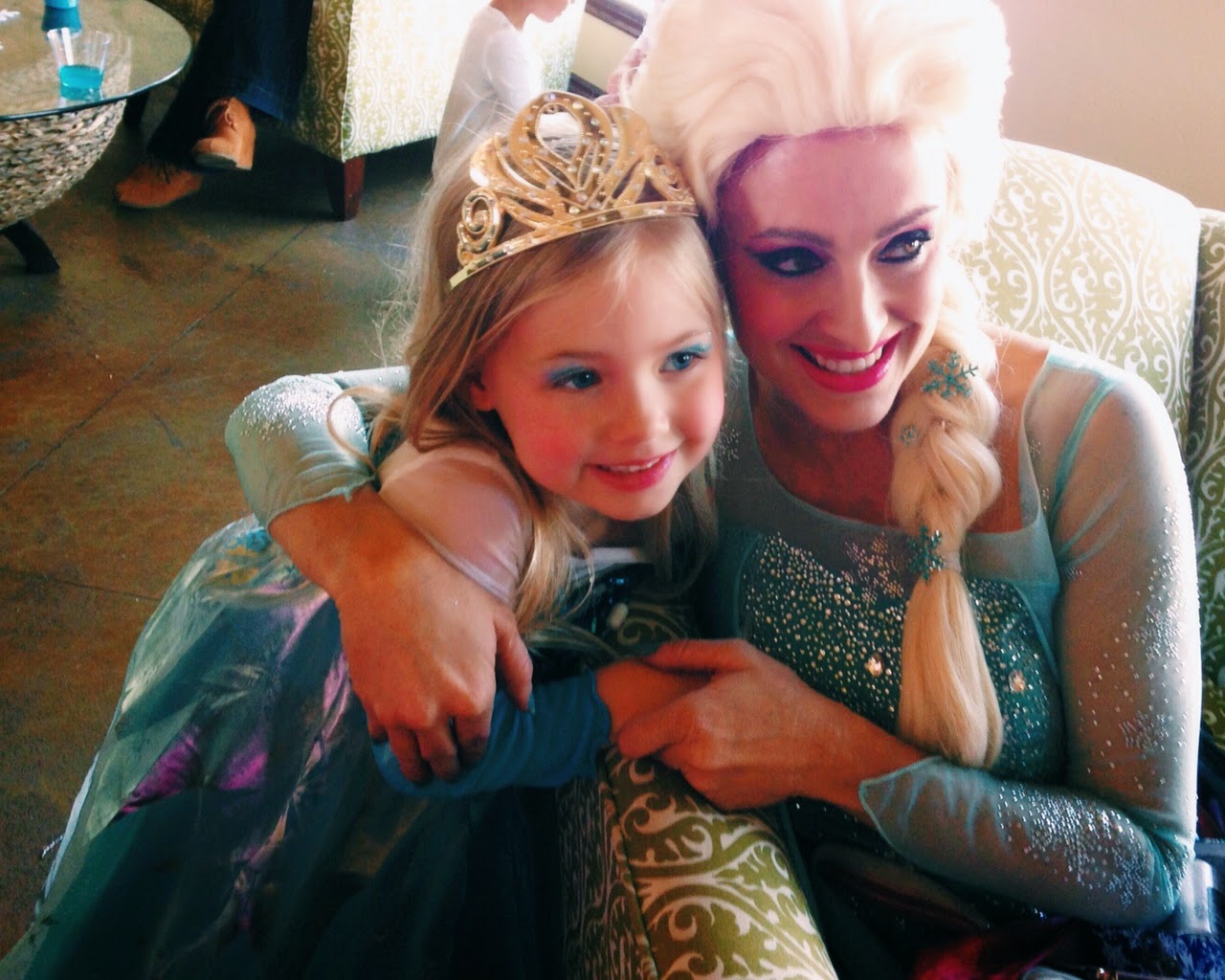 Of course the party had to have a guest appearance by the one and only Elsa. She glided in with "Let it Go" playing from her phone, needless to say, each girl's face lit up instantly. Elsa graced the party full hair, makeup, costume and stole the heart's of many smiling little girls. We witnessed dreams coming true. If you are looking to throw a Frozen Princess Party with Elsa, she was great!