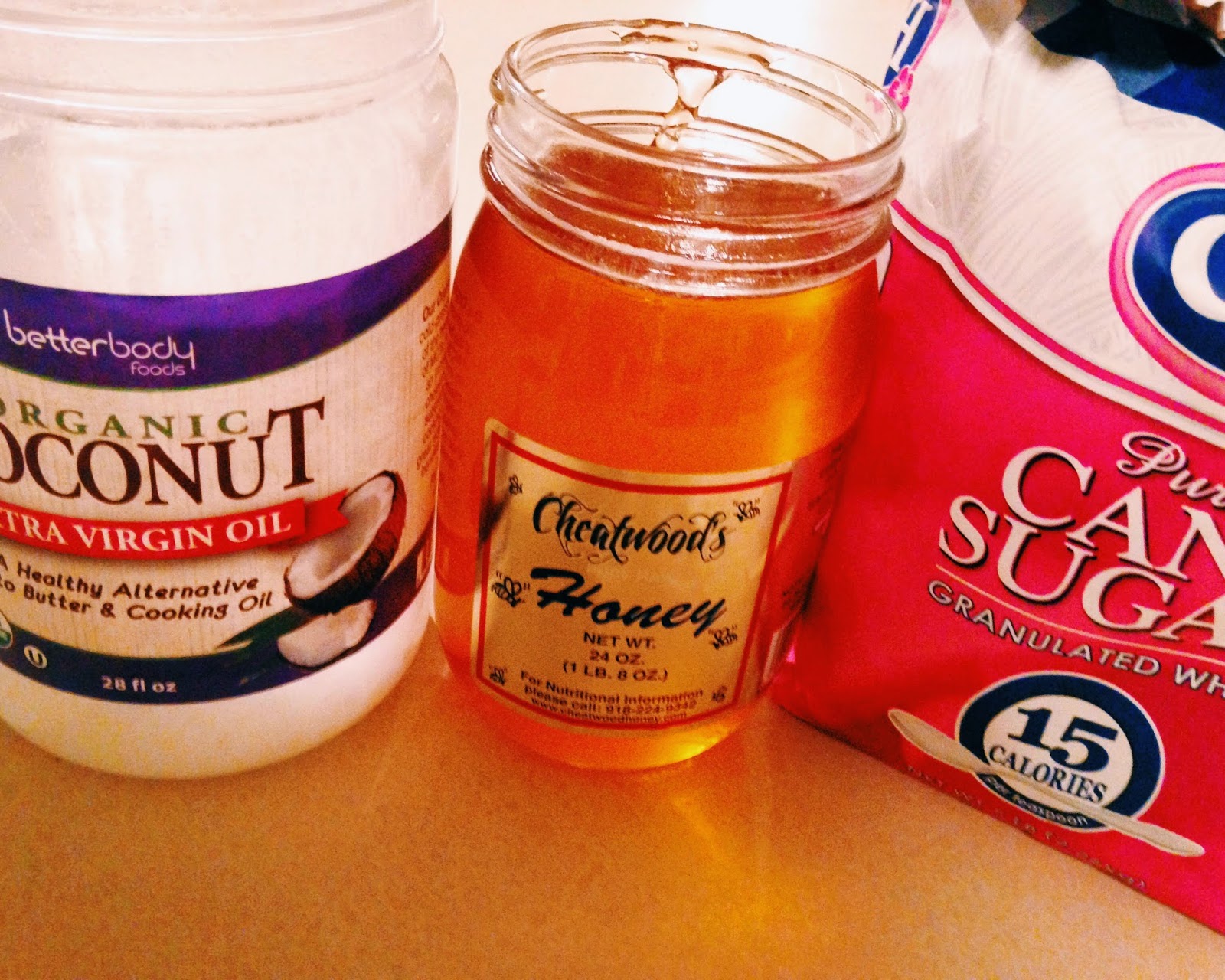 Grab all your best ingredients of raw honey, organic virgin olive oil, and sugar!